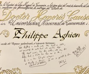 También, en esa ocasión, el Dr. Aghion recibió el título de Doctor Honoris Causa de la UNT.