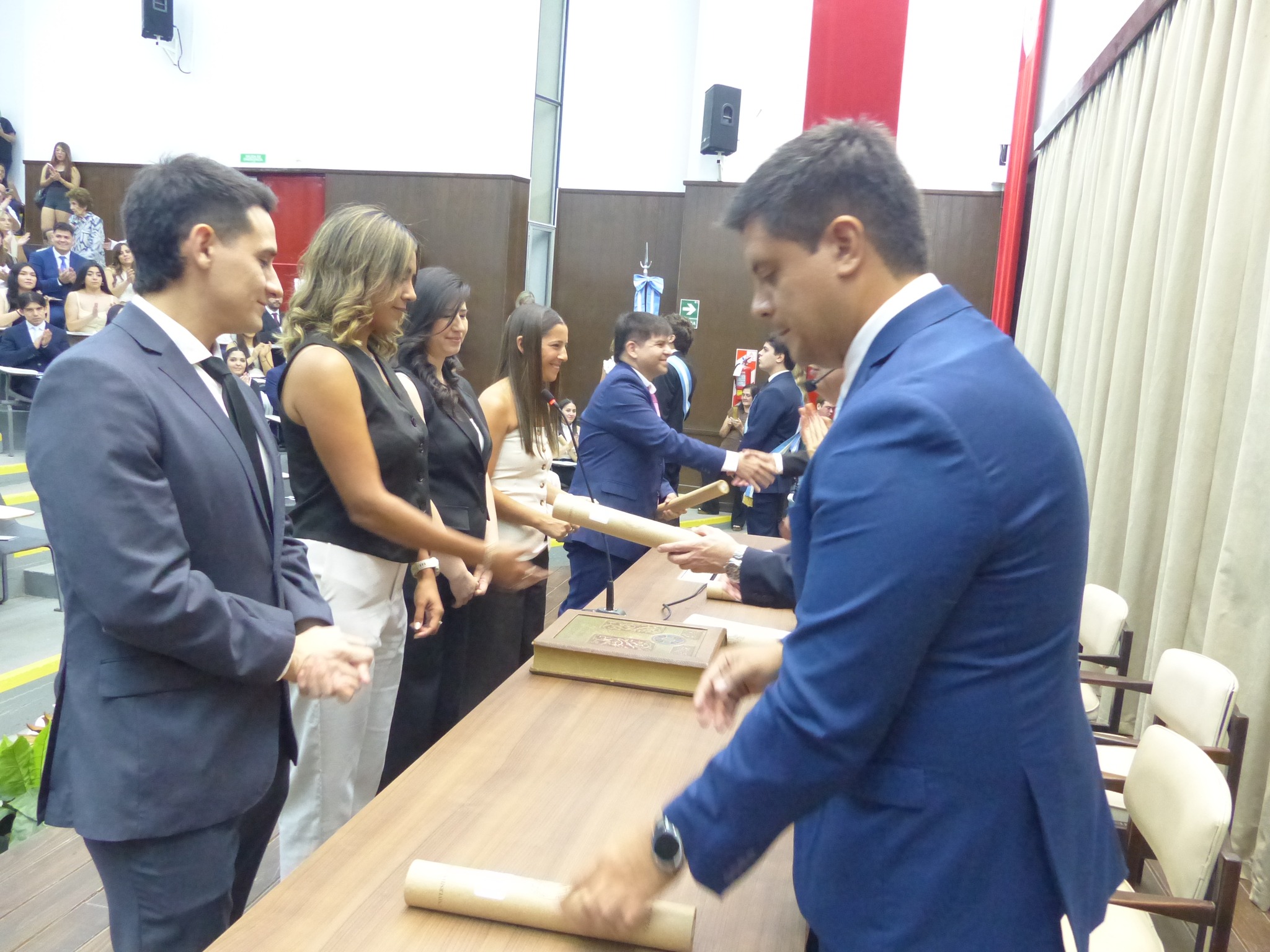 El Mg. Rospide felicitó a los graduados y brindó unas palabras hacia ellos para expresarle su gratitud y reconocimiento por formar parte de esta Casa de Estudios: “Durante su estadía como estudiantes universitarios, han demostrado un enorme compromiso con la excelencia académica a través de incontables horas de estudio, análisis y debates. Los desafíos que han superado, las lecciones aprendidas y los vínculos forjados han contribuido a su crecimiento intelectual y personal. Además, cada día que han transitado nuestras aulas, cultivaron valores como el esfuerzo, perseverancia, el trabajo en equipo, el pensamiento crítico y la apertura a la diversidad de ideas, las cuales forman parte fundamental de nuestra formación”.