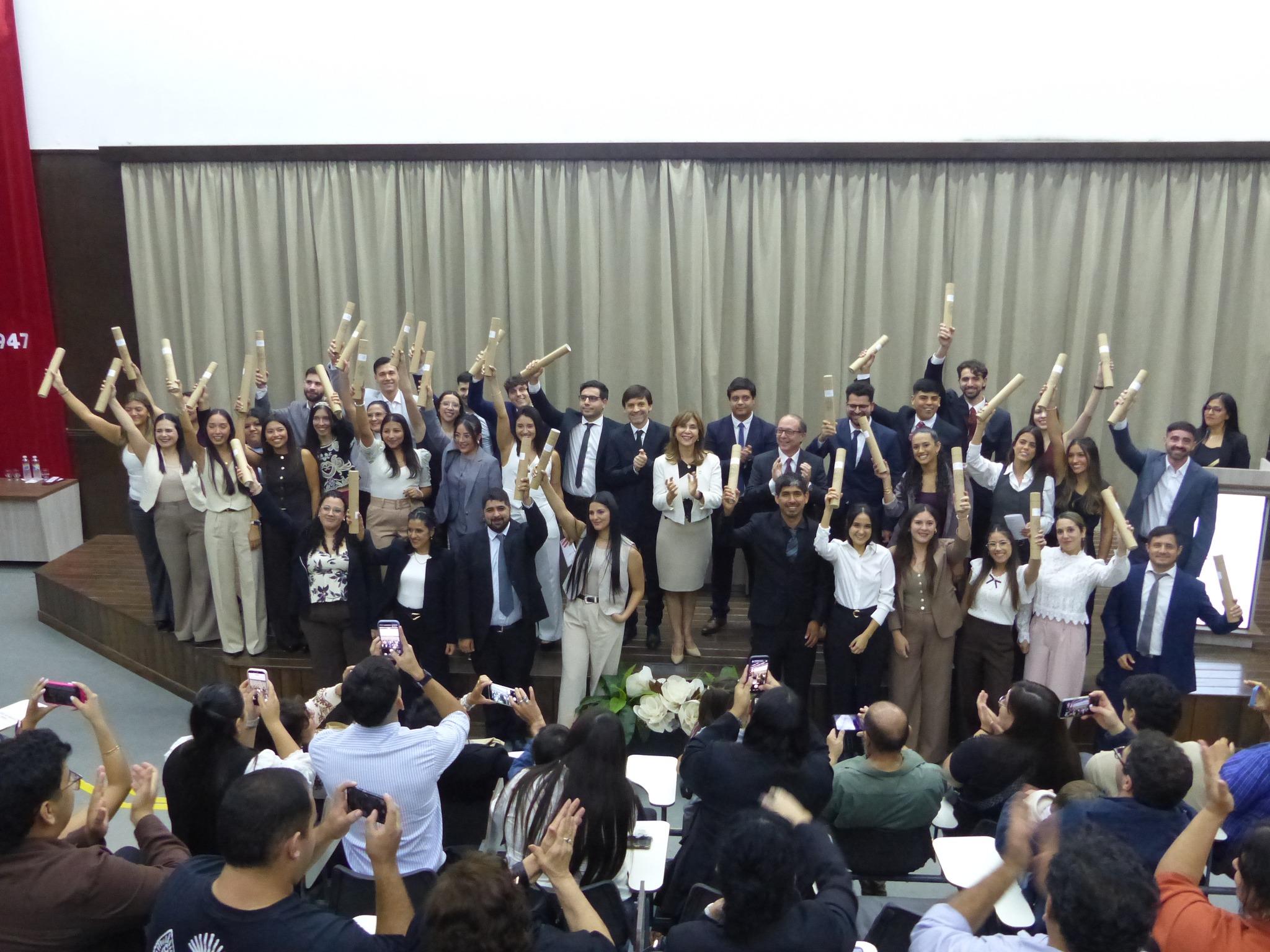 Al dirigir unas palabras hacia los presentes la Secretaria Académica expresó: “La posesión de un título y su ejercicio profesional supone la responsabilidad de asumir una actitud basada en principios éticos con integridad, solidaridad y responsabilidad social, sea cual fuere el ámbito en que se desarrollen profesionalmente. Si hay un punto donde quiero poner énfasis es ahí: en convocarlos a ejercer siendo abanderados de sus principios como una conducta permanente de vida. Como institución, tenemos el compromiso y creemos haberlo logrado, de formar no solo profesionales capacitados, sino personas convencidas y comprometidas con estos valores. Estamos seguros de que en la medida que cada nueva generación reconozca y ejerza estos valores, tendremos gradualmente un país y un mundo mejor”.