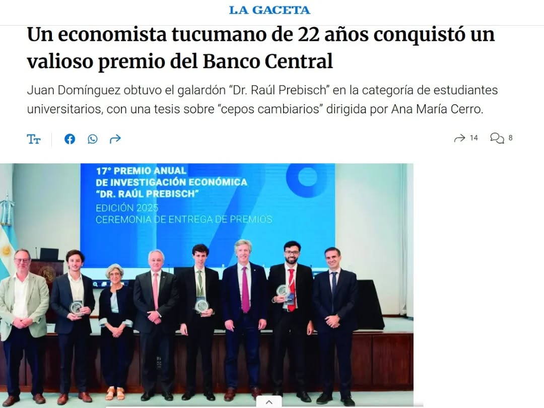 Compartimos la entrevista que publicó el diario La Gaceta: https://www.lagaceta.com.ar/nota/1117667/economia/economista-tucumano-22-anos-conquisto-valioso-premio-banco-central.html