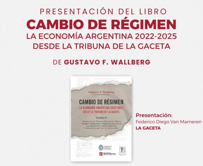 El profesor Gustavo F. Wallberg ofició de expositor principal en la reciente presentación de su libro “Cambio de Régimen. La economía argentina 2022-2025 desde la tribuna de LA GACETA”.
